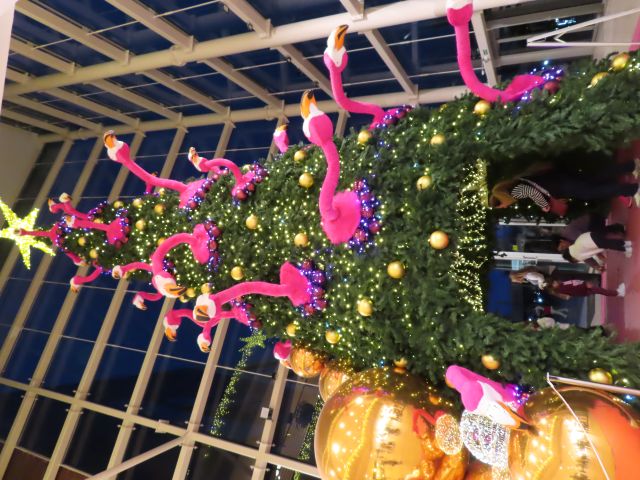 begehbarer Flamingo-Weihnachtsbaum in Las Palmas, Gran Canaria 2025. |