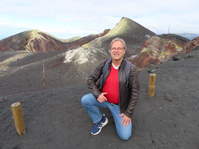 am Kraterrand des neuen Vulkans Tajogaite, La Palma 2025. |