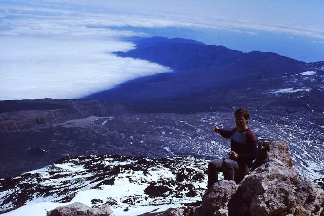 auf dem 3718m hohen Gipfel des Pico del Teide, Teneriffa 1986. |