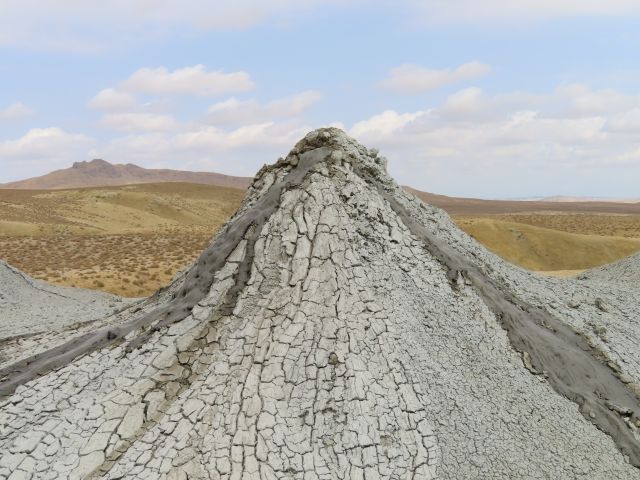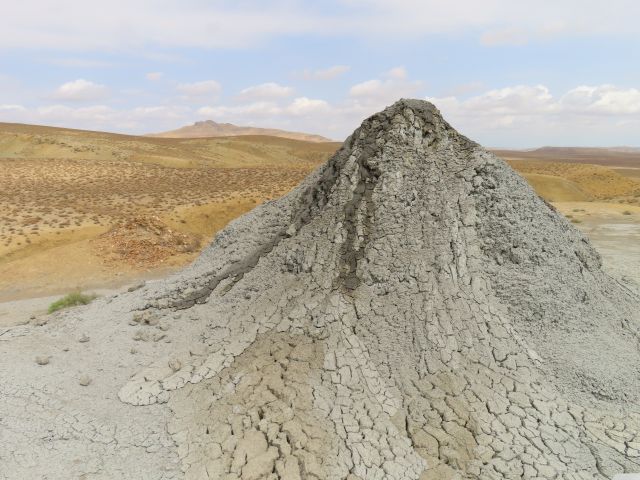 Schlammvulkan in der Wüste, Aserbaidschan. |