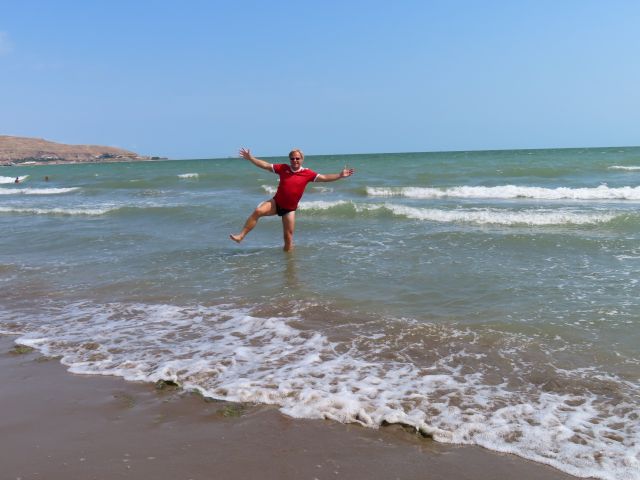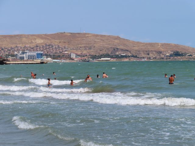 Dip-In ins Kaspische Meer, Aserbaidschan. |